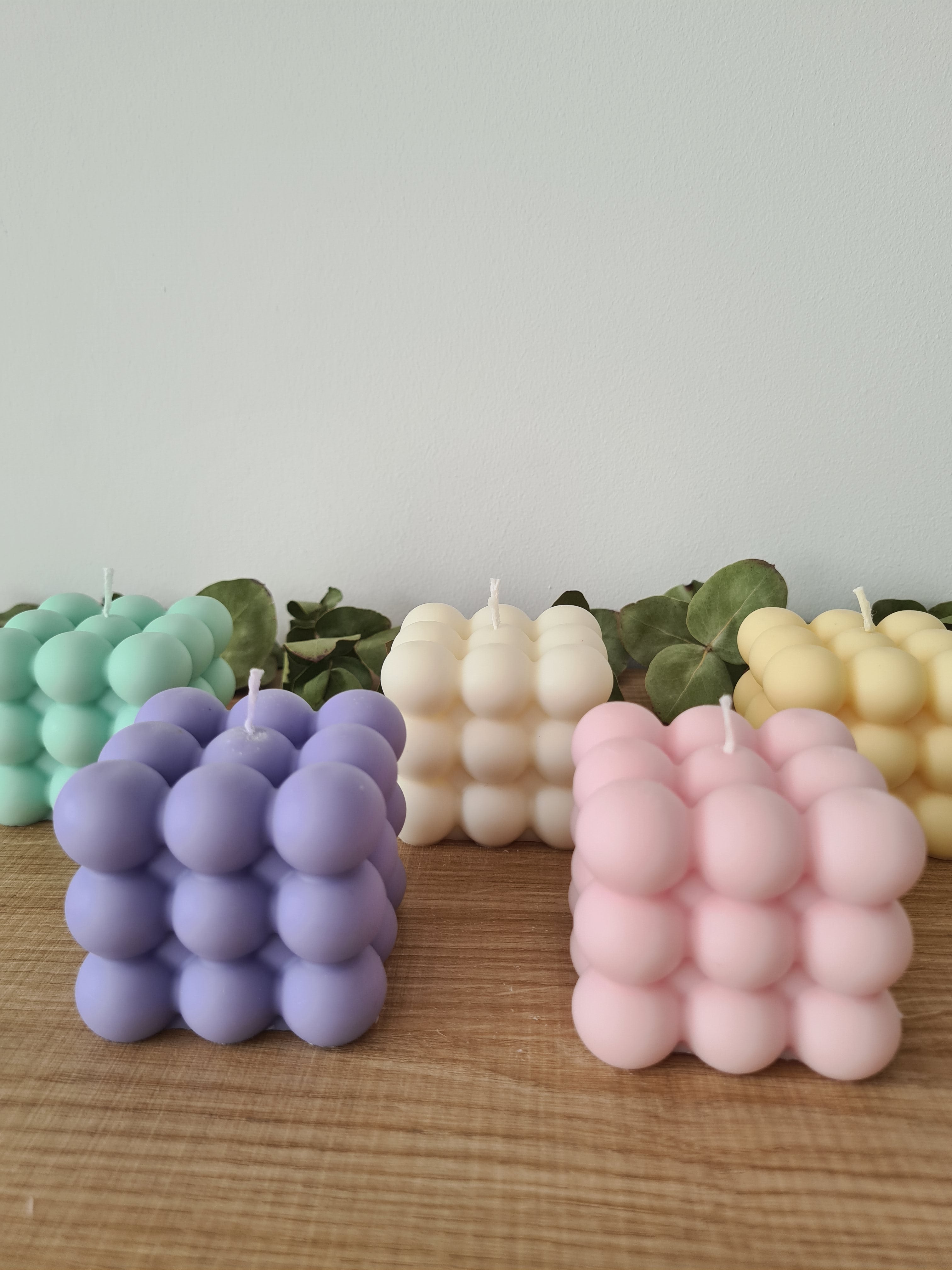 Velas hechas de cera de soja con distintas formas y aromas. Aunque...