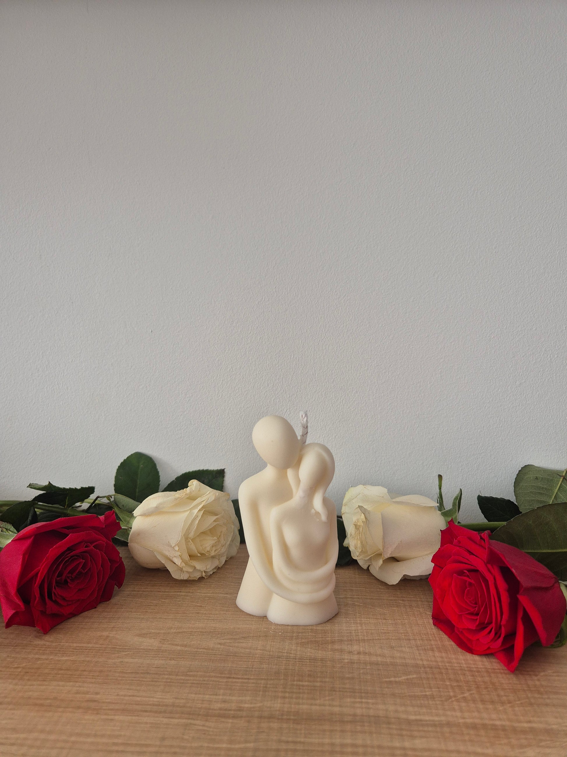 Esta vela con forma de pareja abrazada y aroma a vainilla, representa el amor en todo su esplendor.